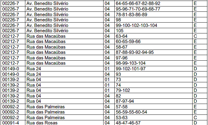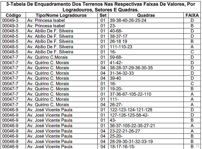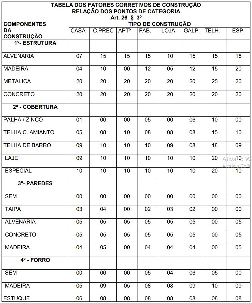 | ESQUINA/ MAIS DE UMA FRENTE | 1,10 | ACLIVE | 0,95 | FIRME | 1,00 |