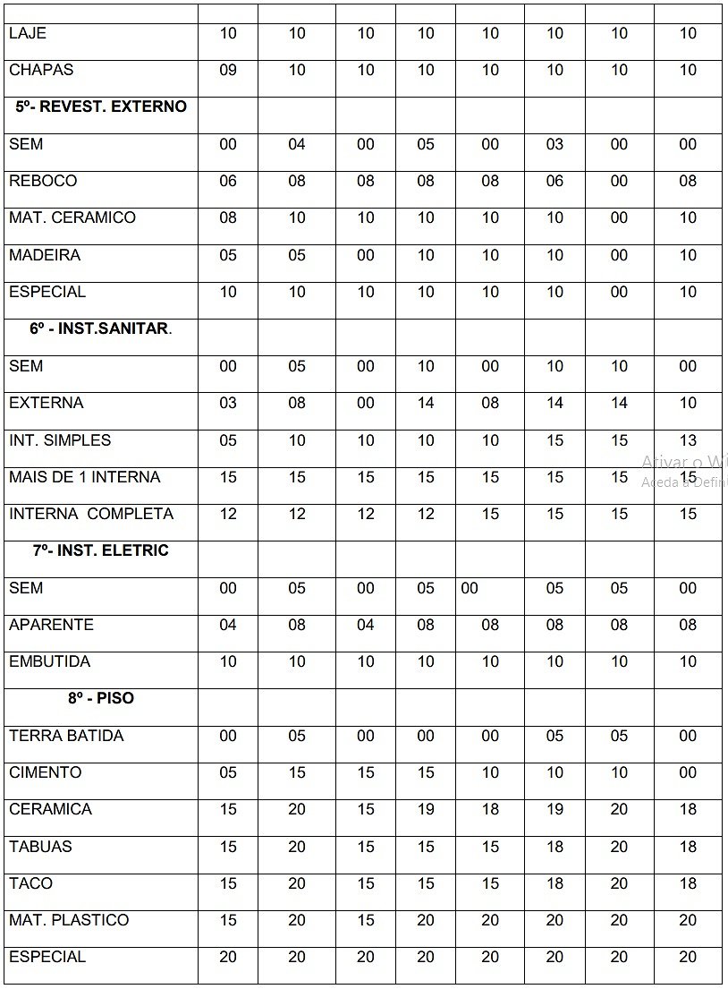 | 07 | Outras atividades e exercício pessoal não especificadas. | 0,05 | 1,00 | 10,00 |
