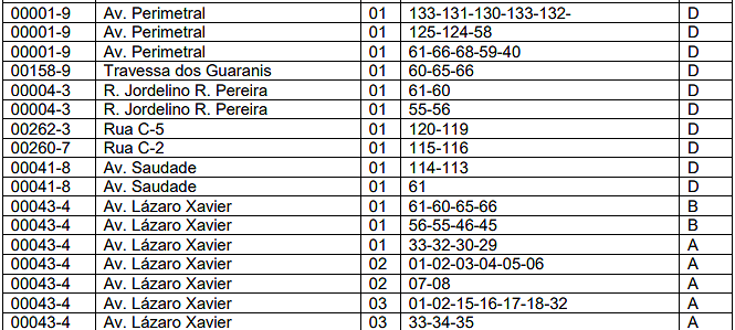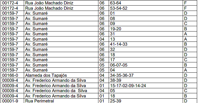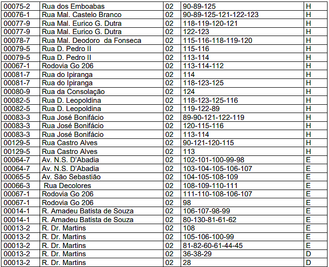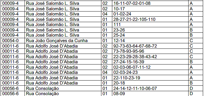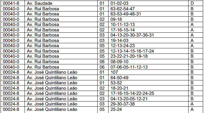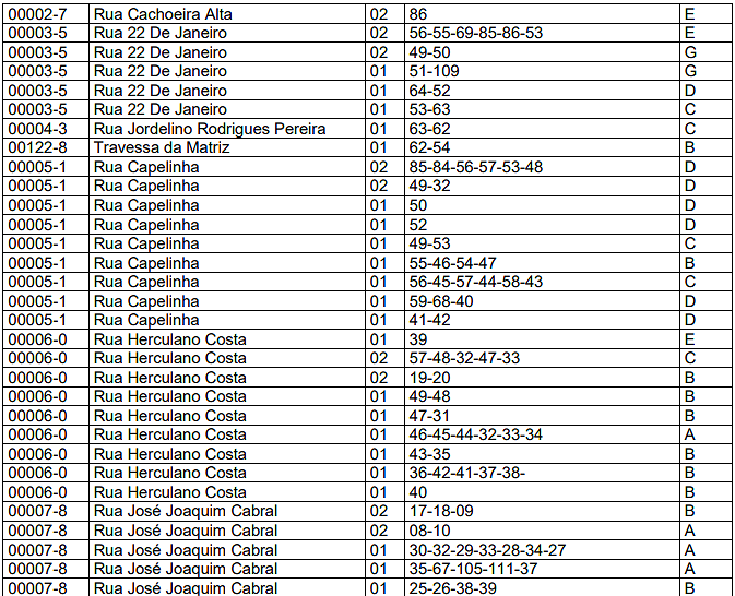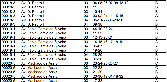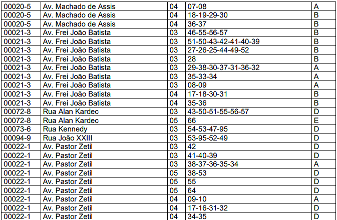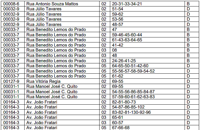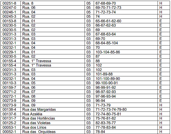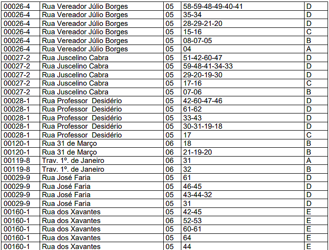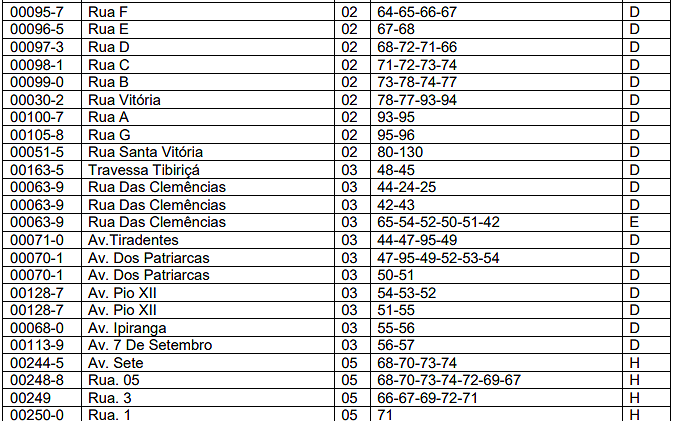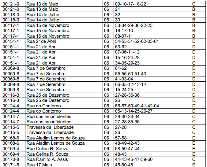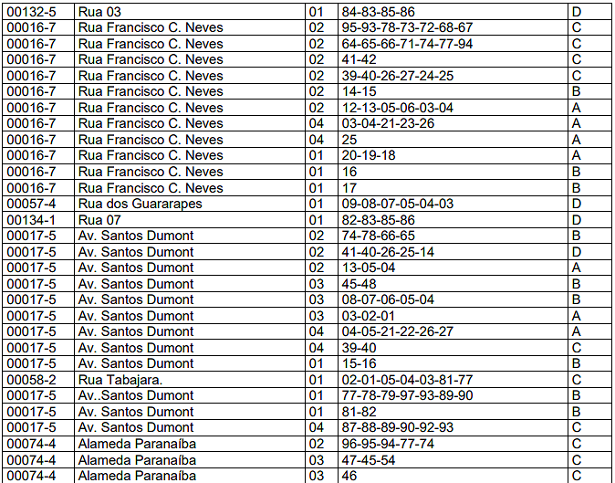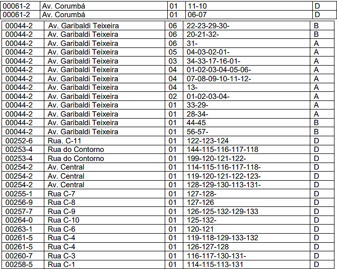 | 03 | Barracas. | 0,10 | 0,40 | 2,00 |