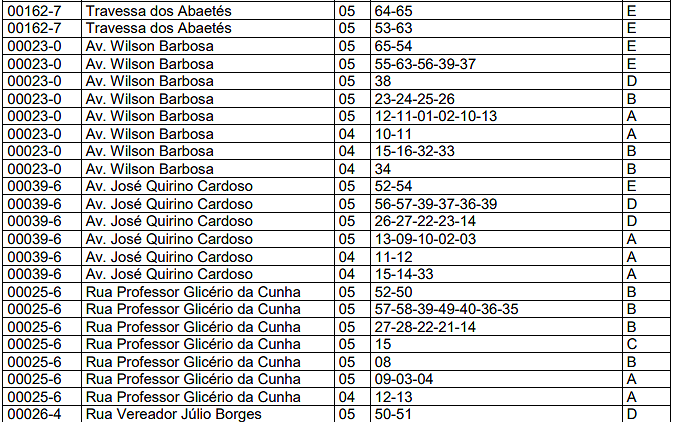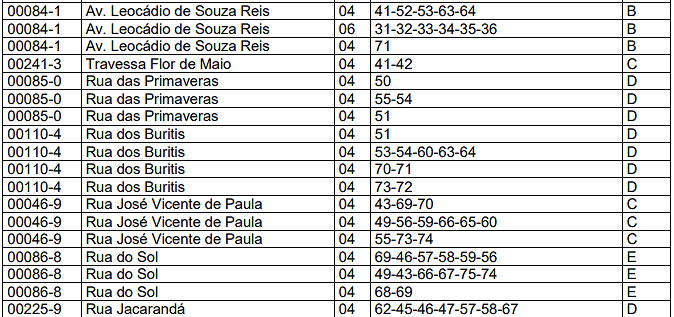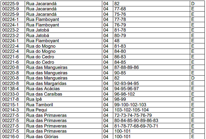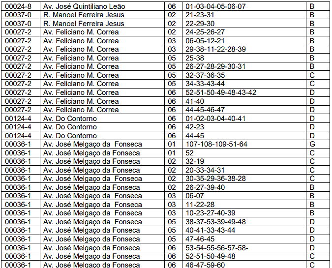| ENCRAVADO | 0,80 | IRREGULAR | 0,80 | COMBINAÇÃO DOS DEMAIS | 0,80 |