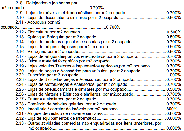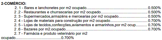 Comércio....................................................0,25% por m2